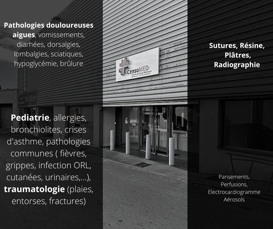 Les accidents domestiques et les pathologies nécessitant un avis immédiat peuvent être adressés dans le Centre.